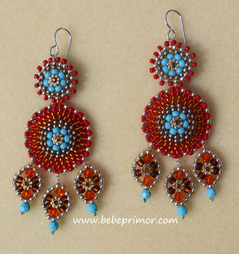 Aretes livianos hechos a mano elaborado con perlas swarovski,Seed bead Miyuki glass y silver