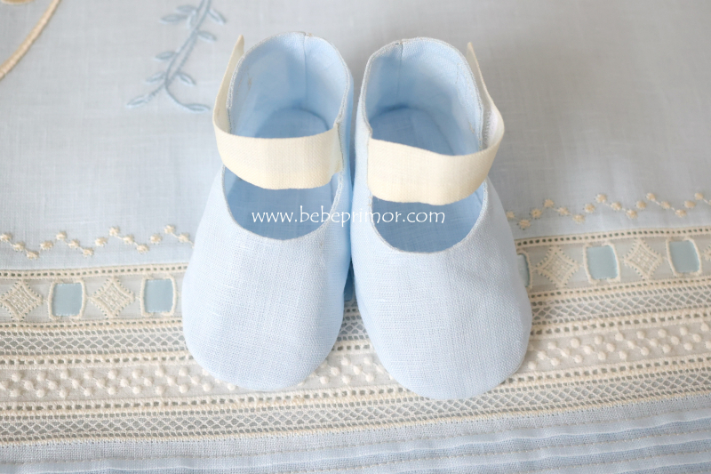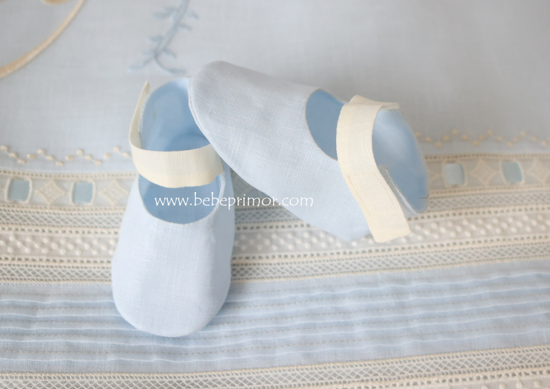 Zapatos en estopilla azul y crema para varón .